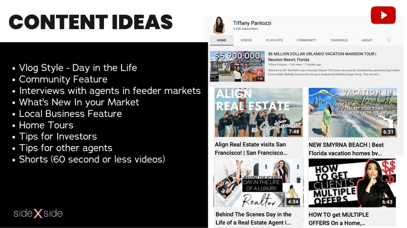 “There’s a girl in my market who built her business strictly by going to model homes and walking the floor plan,” said Tiffany. “It’s nothing fancy; literally I think it’s her husband holding the camera. And she crushes now with leads from YouTube of buyers who want to buy new construction.”