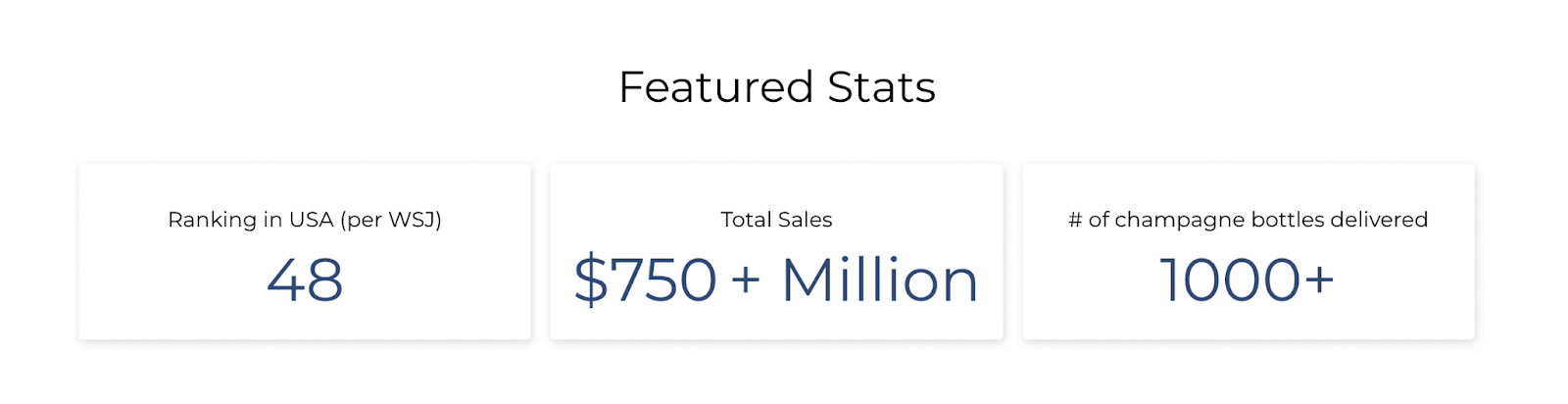 Visuals give your website more depth — and not every visual has to be a listing photo. Try incorporating stat blocks: visual representations of your key business metrics. These can be standard stats, like # of homes sold, or creative ones, like this one from Artemis Real Estate: # of champagne bottles delivered.